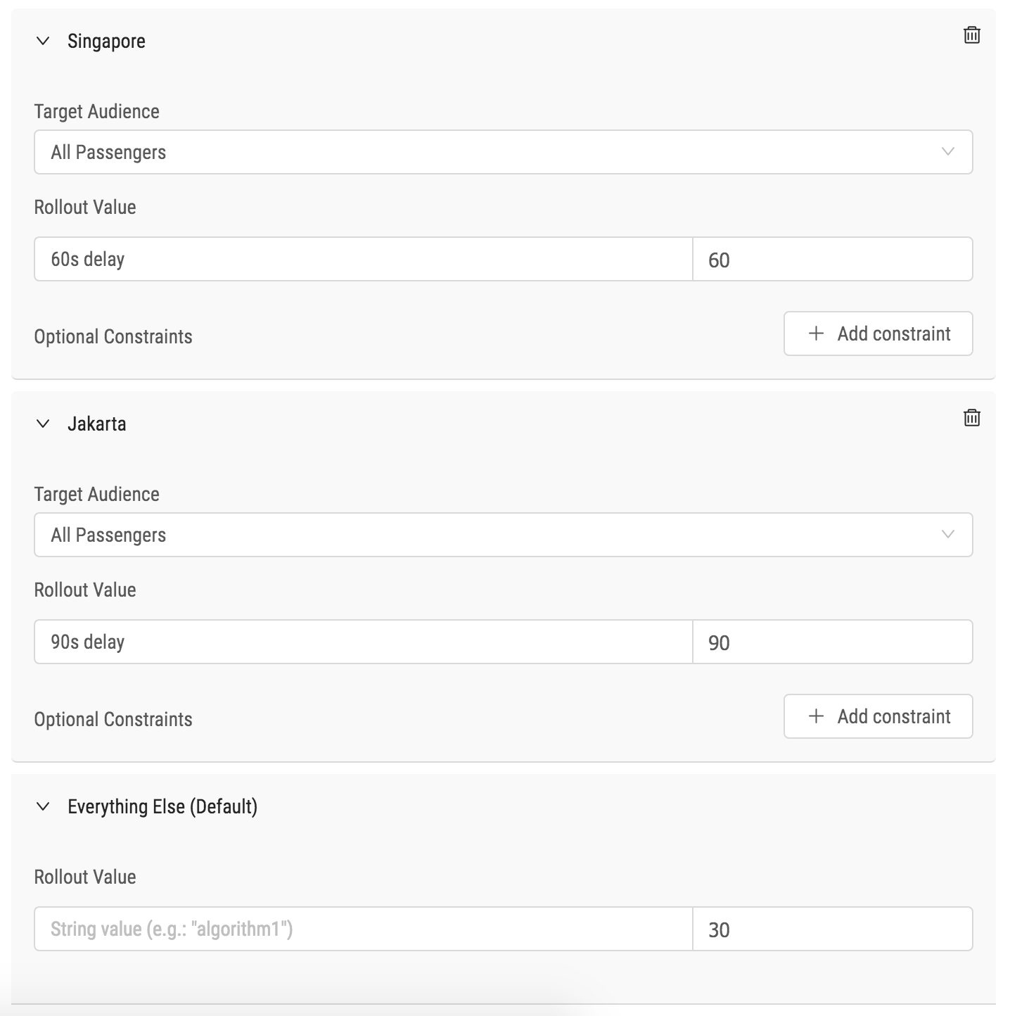The City facet configures the rollout. This means each city becomes a feature on its own for this variable. We also provide a web-based UI for configuring everything, as shown in the figure below.