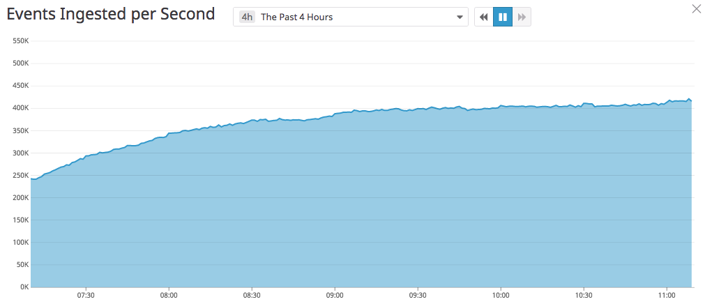 In our data, the time and event types are the key attributes. Every single event has the time that it was ingestedand its associated event type.