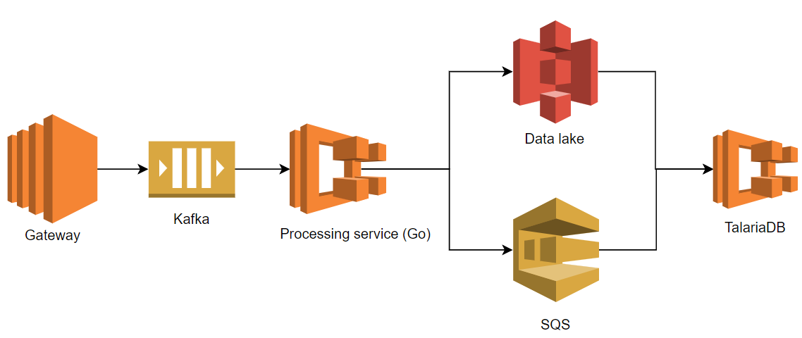 - Our custom built API Gateway received HTTP requests from the mobile app. It simply decoded and authenticated HTTP requests, streaming the data to the Kafka queue.