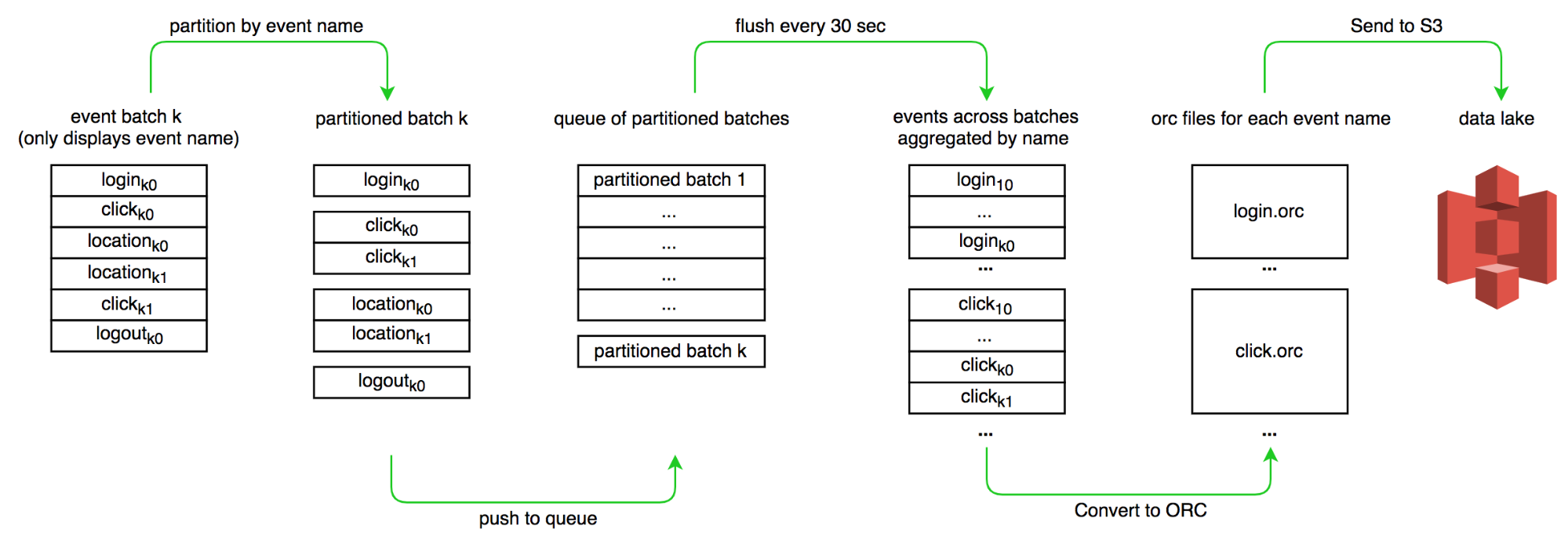 - Partitioned the batch of events by event name.
